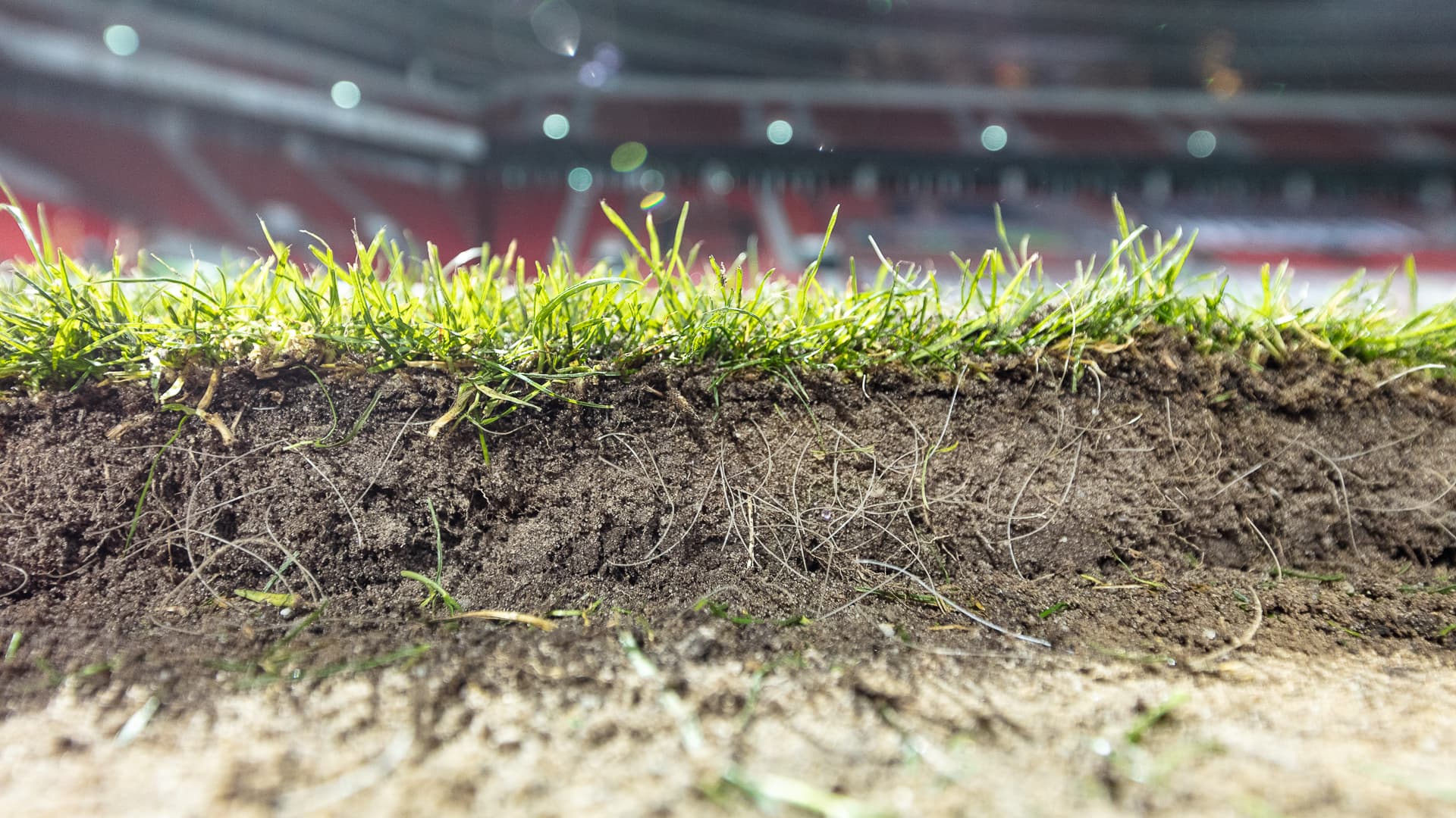 In der BayArena hat heiler den nachhaltiger Hybridrasen Sporthybrid Turf verlegt. Der Rasen ist dank seiner Bio-Kunstofffasern vollständig kompostierbar. Damit setzt Bayer ein Zeichen für die Nachhaltigkeit im Profi-Fußball.