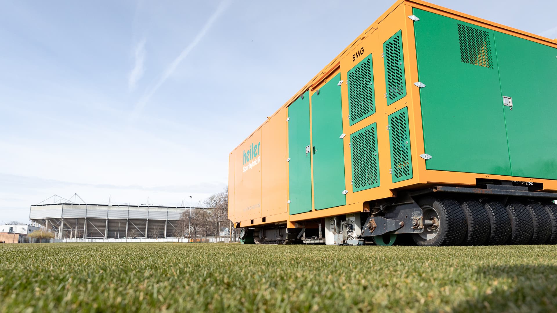 Mit der mobilen Sportheat Heizanlage präsentiert heiler eine Neuheit, die Profivereinen aus der Bundesliga den Betrieb von Rasenheizungen ganz ohne stationäre Heizzentrale ermöglicht. Die Anlage ist nach AwSV zertifizierbar, speziell für Rasenheizungen konstruiert und digital zu bedienen.