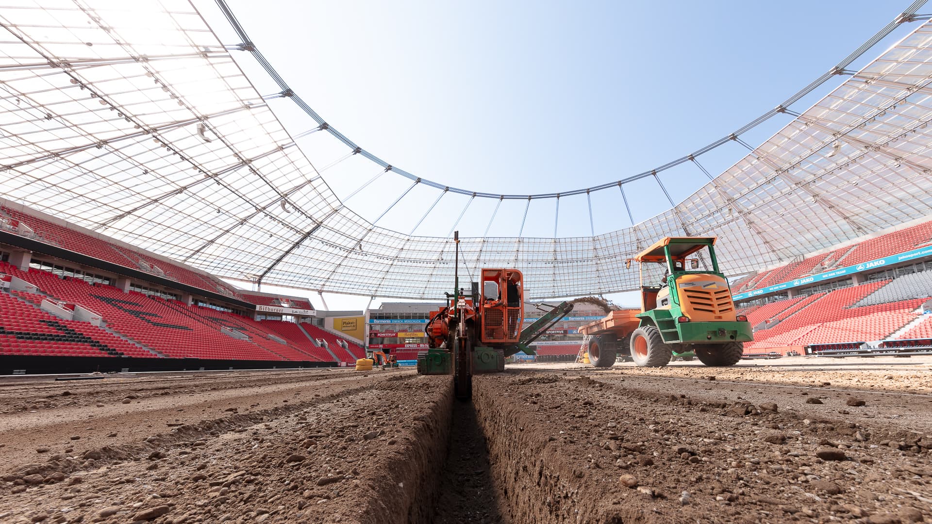 Während die Nationalmannschaften rund um die Europameisterschaft durch den Kontinent gereist sind, hat die Bielefelder Firma heiler Sportplatzbau umfangreiche Umbauarbeiten in der BayArena in Leverkusen vollzogen.
